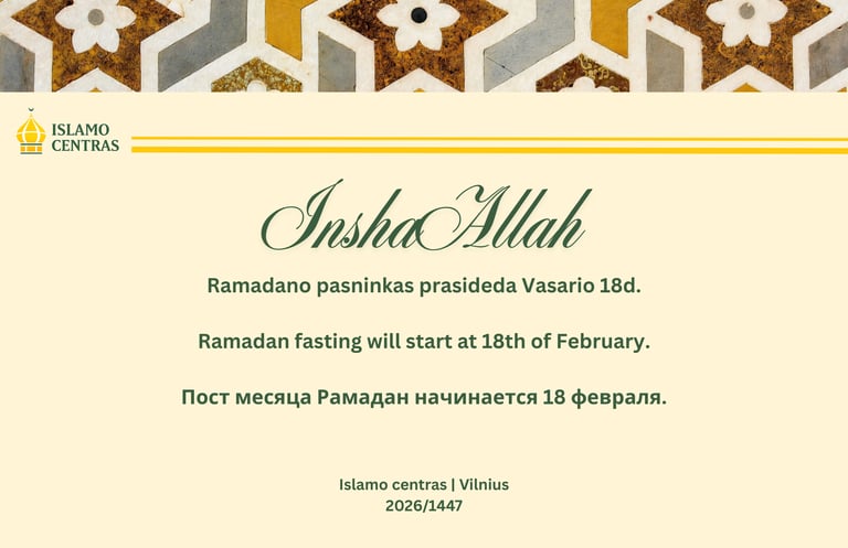 Nuoširdžiai pranešame, kad, Allaho valia, Ramadano mėnuo prasideda rytoj.